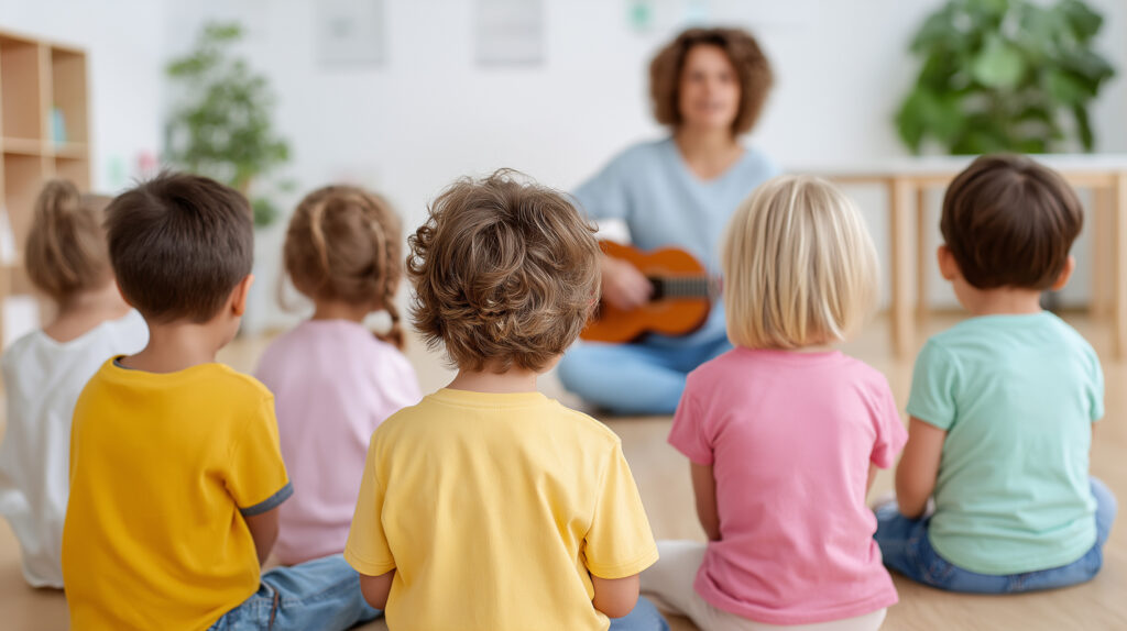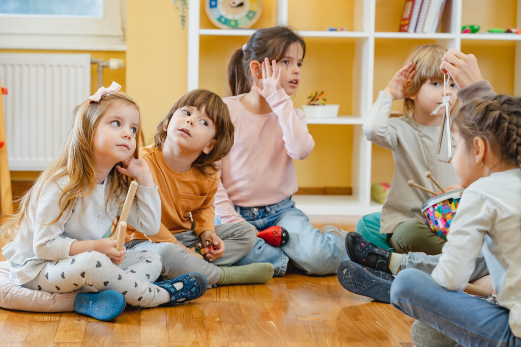 Hier entdecken Kinder Musik mit dem ganzen Körper. Wir singen, bewegen uns, spielen, hören – und tauchen gemeinsam in die Welt der Klänge ein.